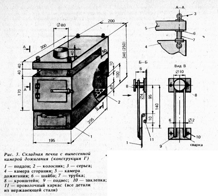 была разработана конструкция Г телескопически собираемой складной печки